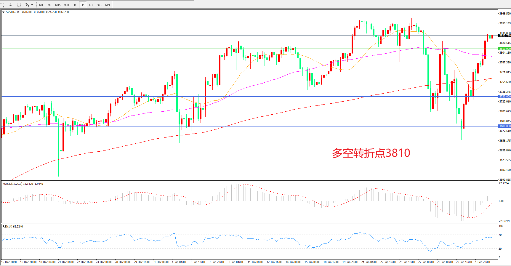 多空转折点:3810.00