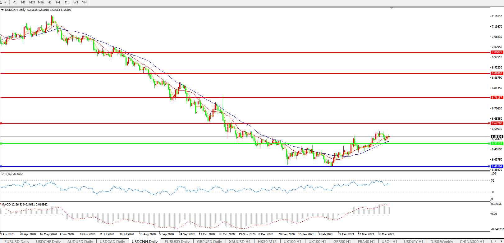 交易策略: 在6.5200之上,看涨,目标价位为6.6300,然后为6.7615。