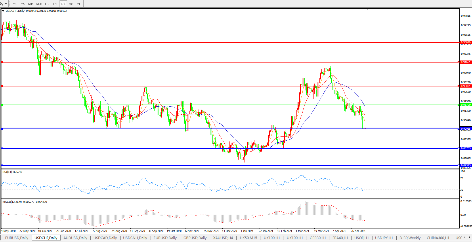 美元兑瑞郎USDCHF    日线图: