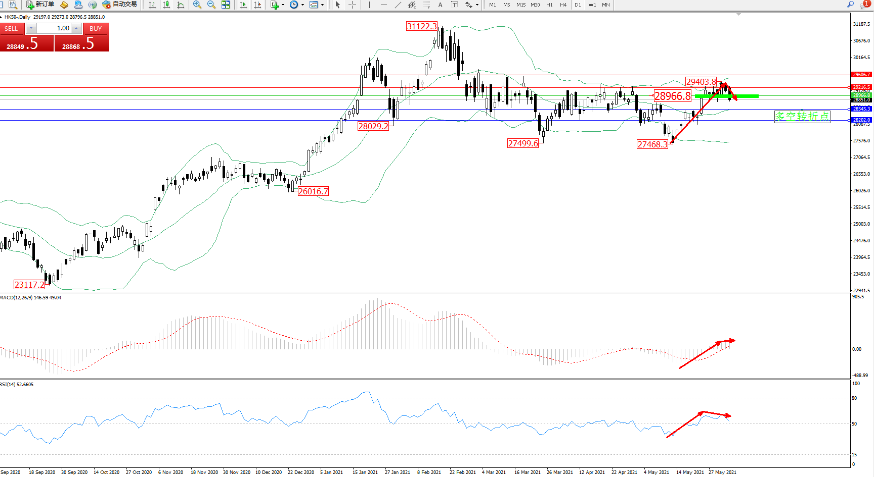 恒指HK50 ——日K线图显示: