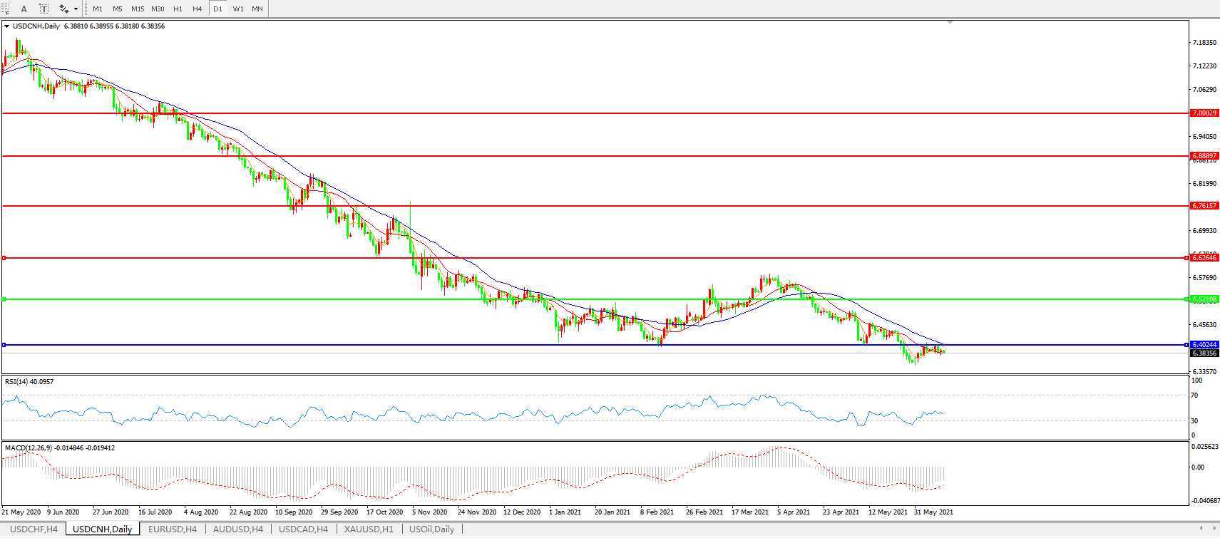 美元兑人民币USDCNH    日线图: