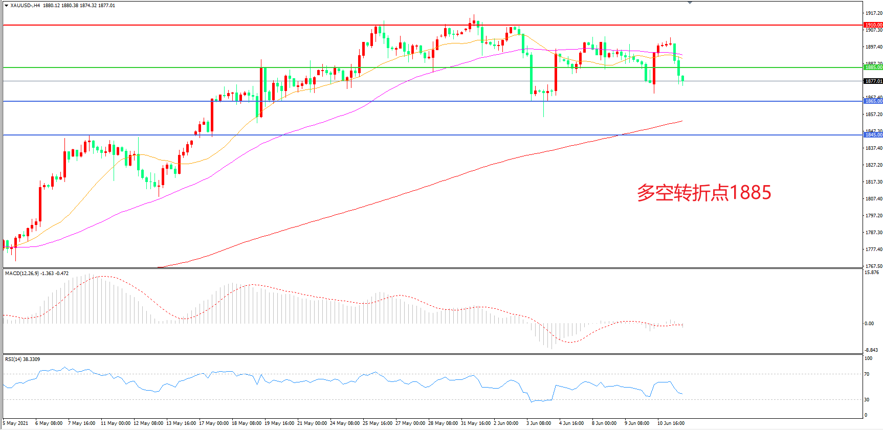 交易策略:在1885.00之下看跌,目标1865.00 1845.00