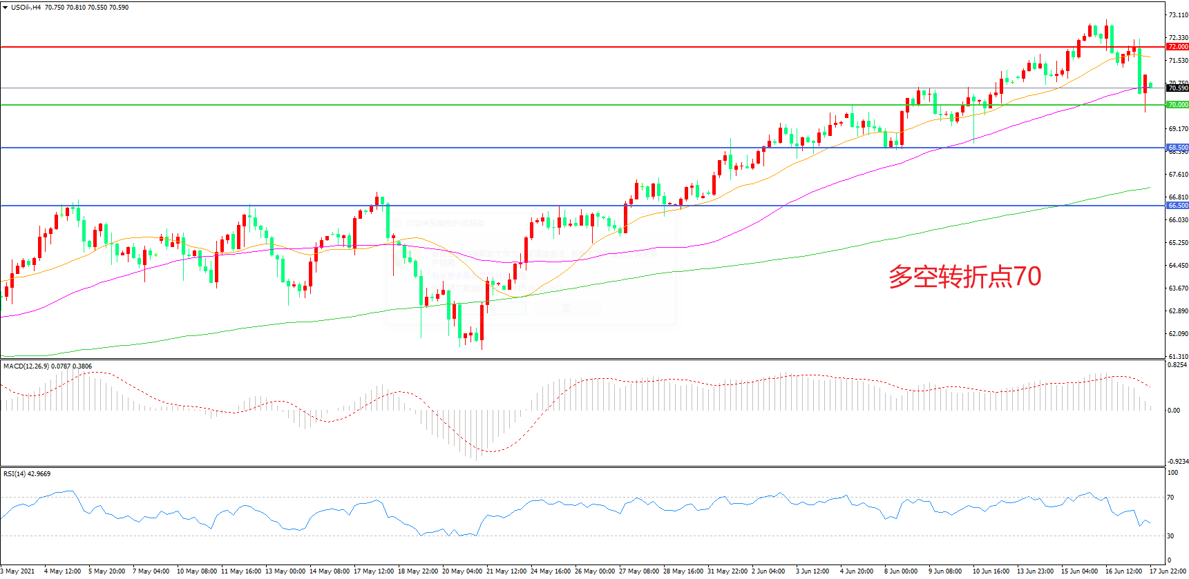 多空转折点:70.00