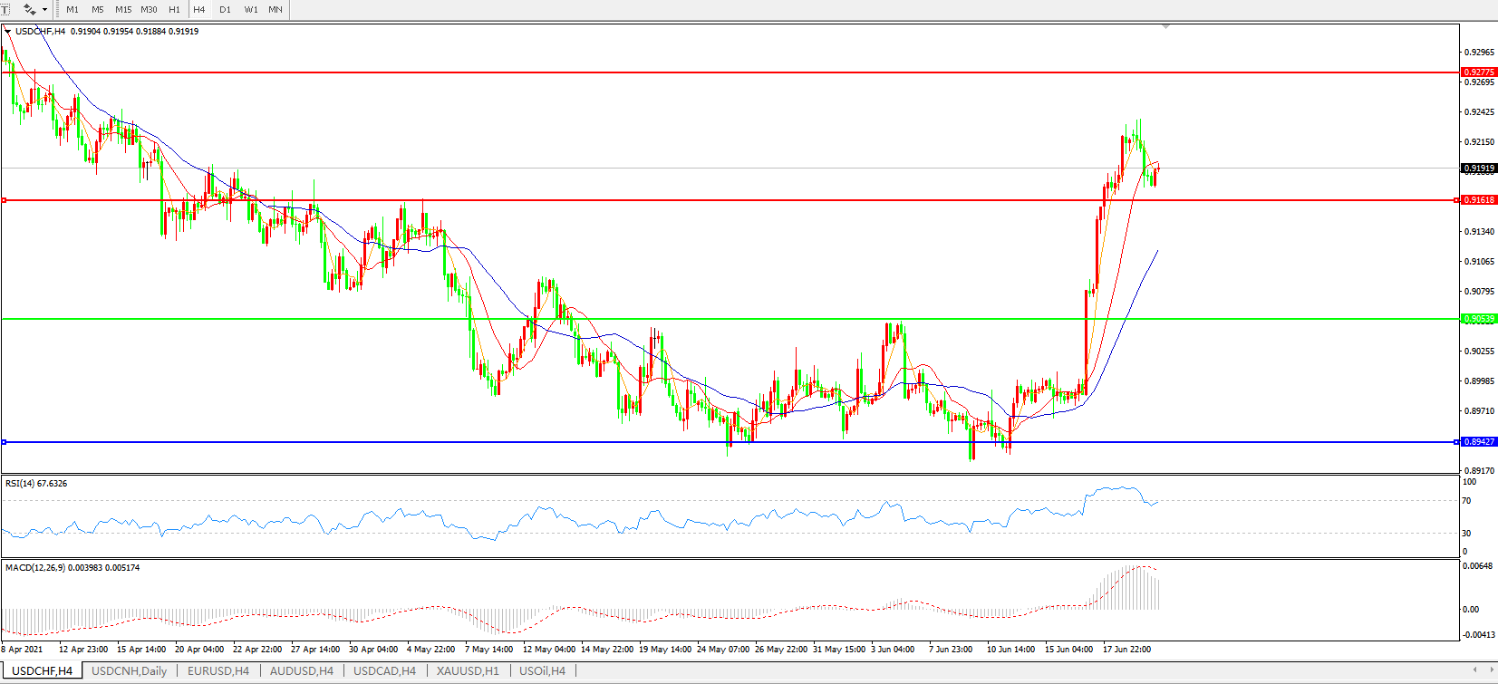 美元兑瑞郎USDCHF    4小时图: