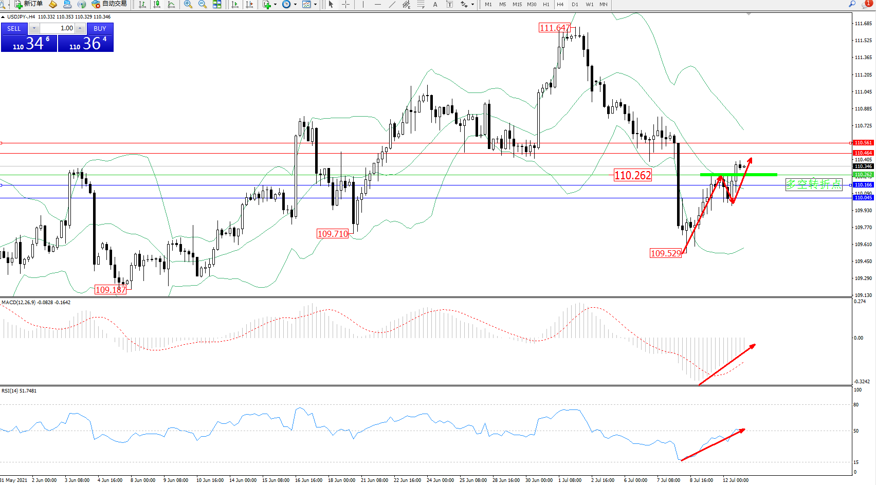 交易策略:110.262上方看涨,目标110.464、110.561