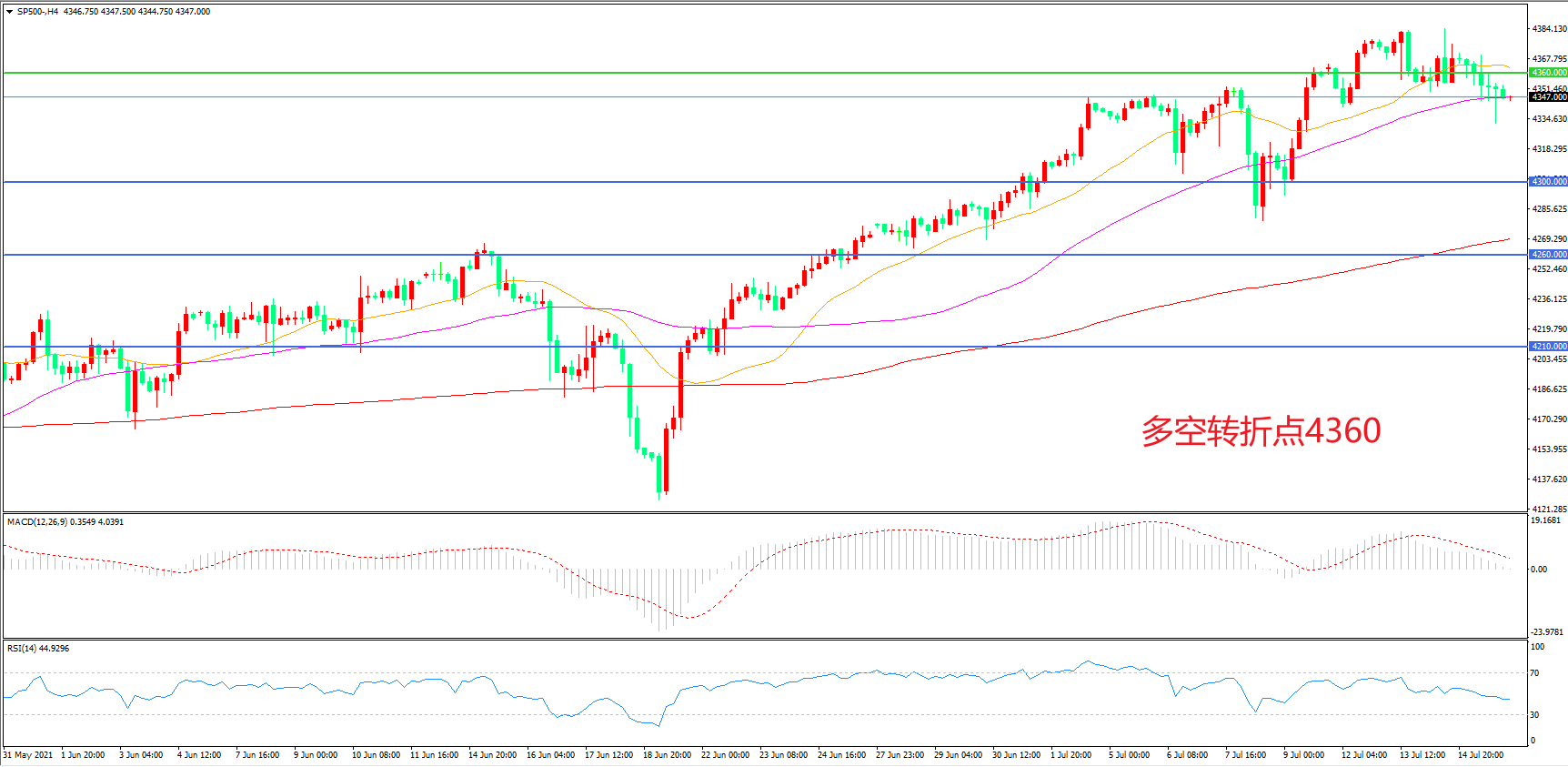 多空转折点:4360.00