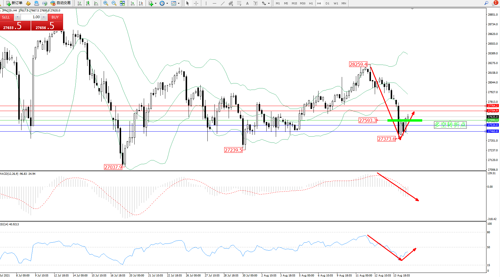 日经指数JPN225——4小时K线图显示: