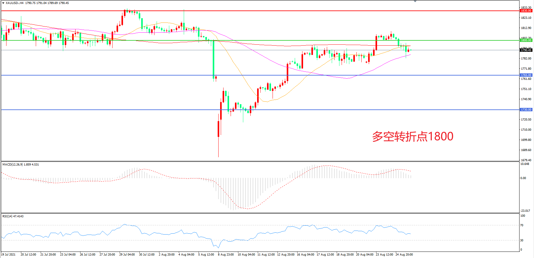 备选策略:在1800.00之下看跌,目标1765.00 1730.00