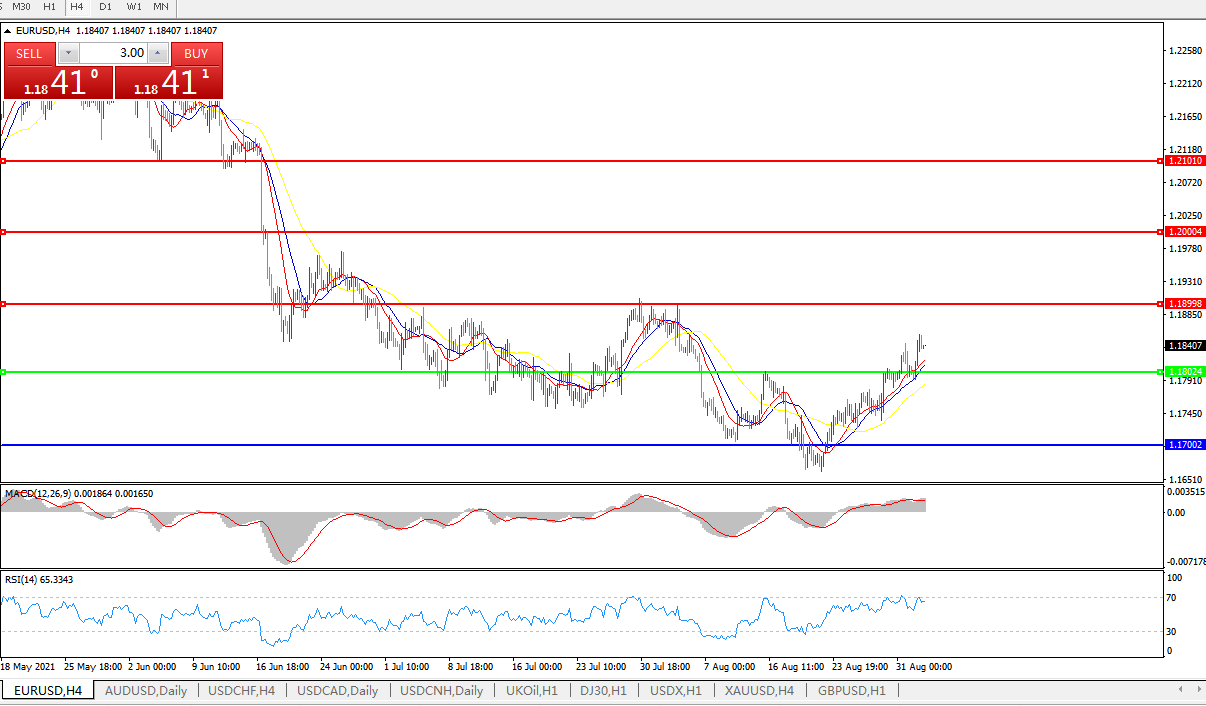 交易策略:1.1800上方看涨,目标1.1900、1.2000