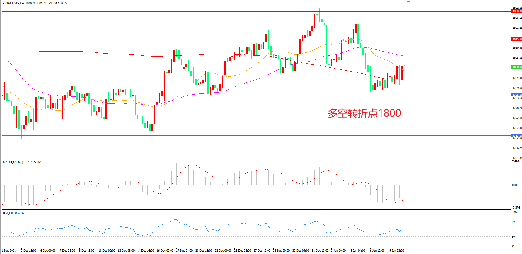 交易策略:在1800.00之下看跌,目标1785.00 1763.00