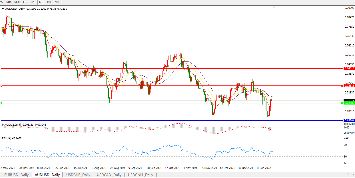 交易策略:0.7100上方看涨,目标0.7250、0.7400