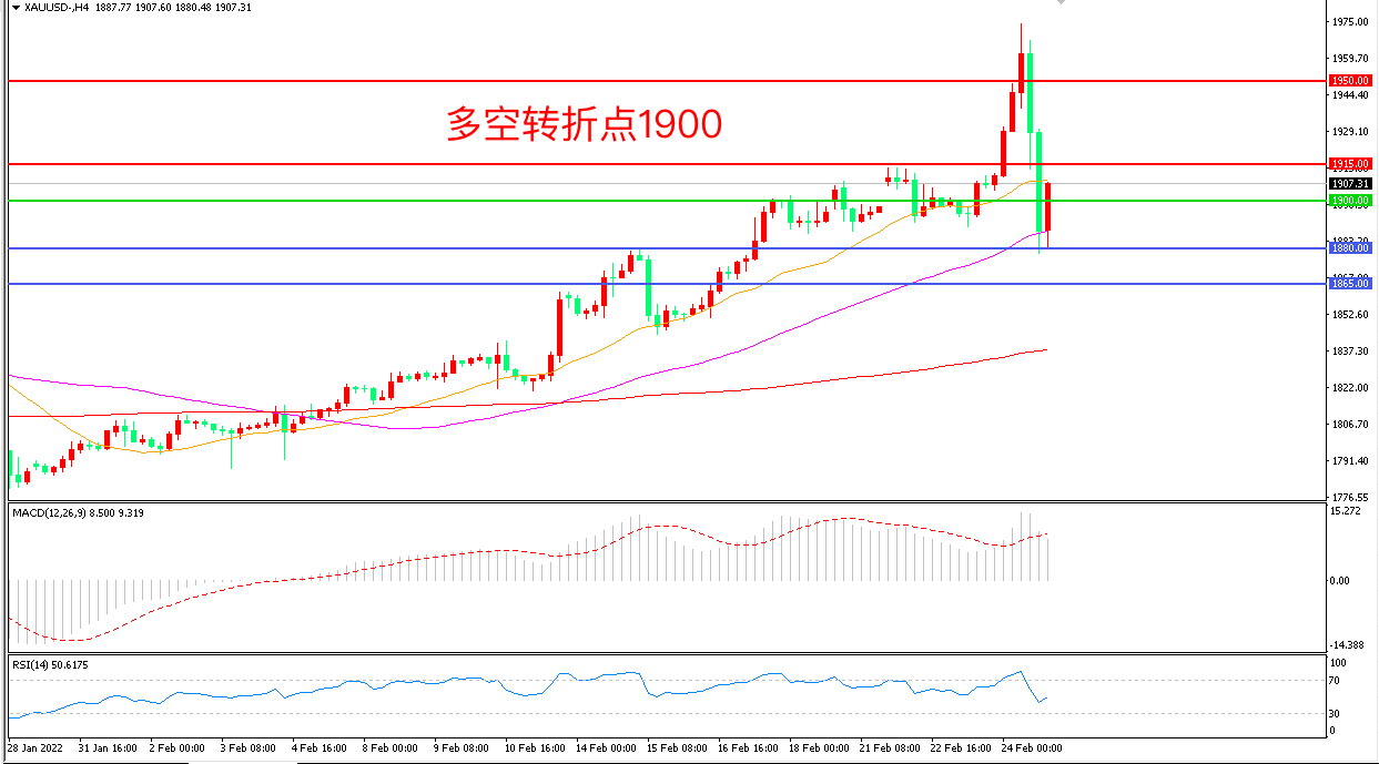 备选策略:在1900.00之下看跌,目标1880.00 1865.00