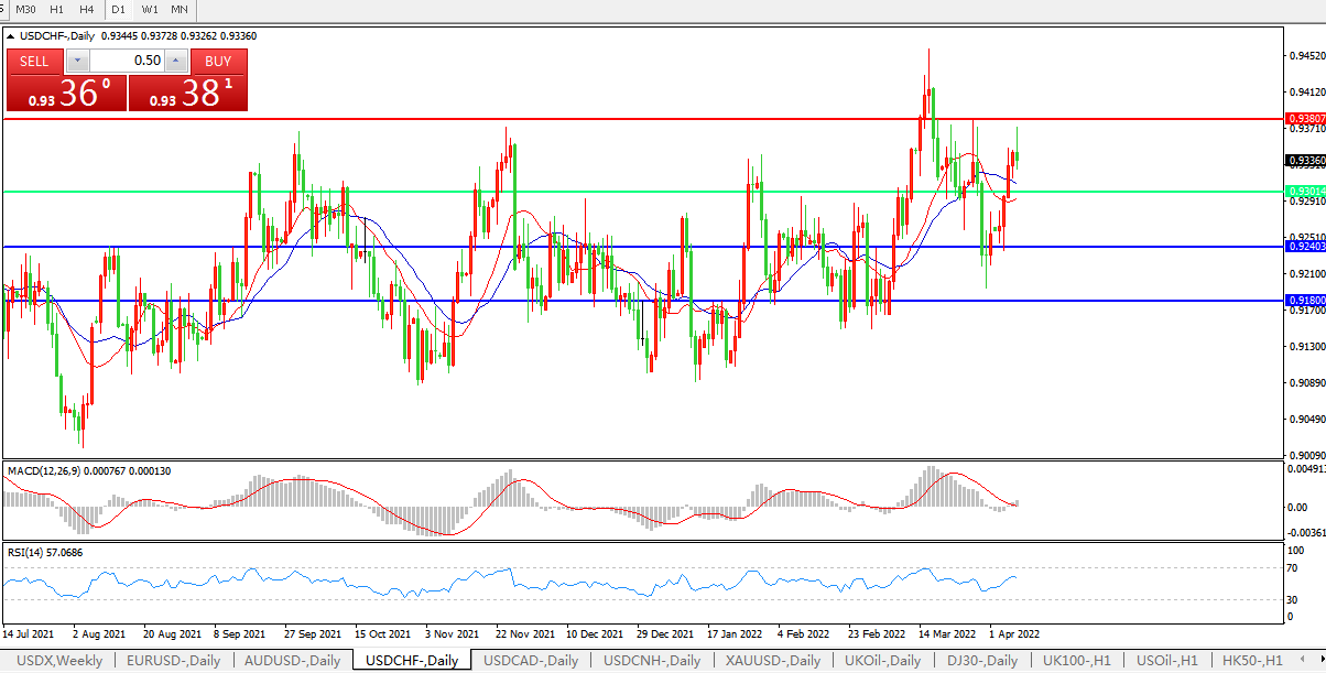 交易策略:0.9300上方看涨,目标0.9380、0.9500