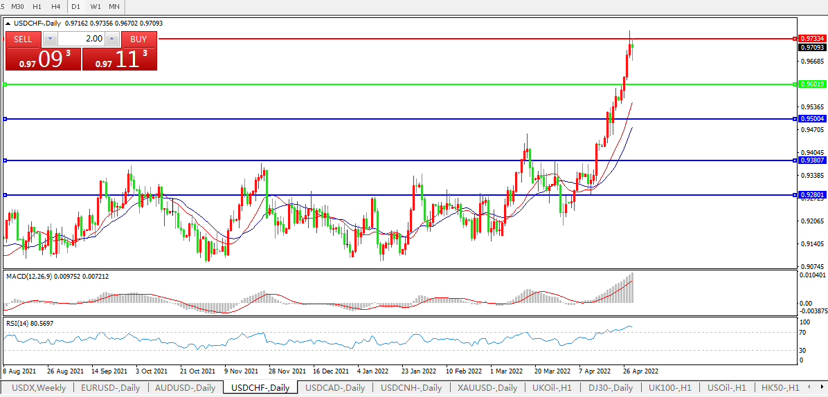 美元兑瑞郎USDCHF 日线图: