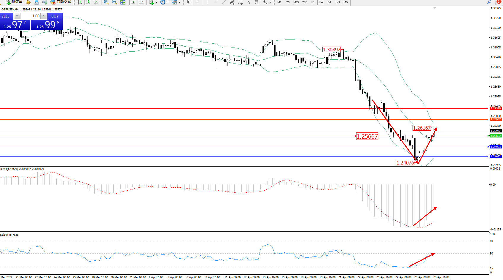 英镑美元GBPUSD ——4小时K线图显示: