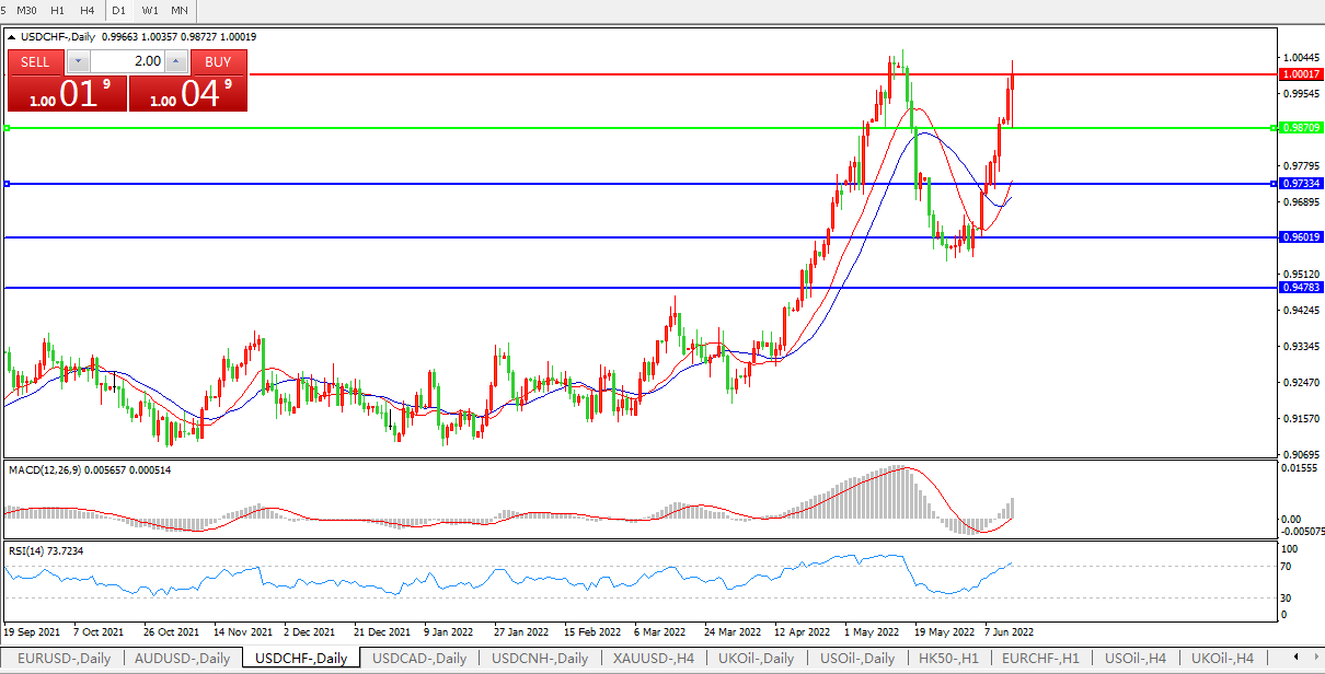 75基点加息甚嚣尘上,美元兑瑞郎持续上攻