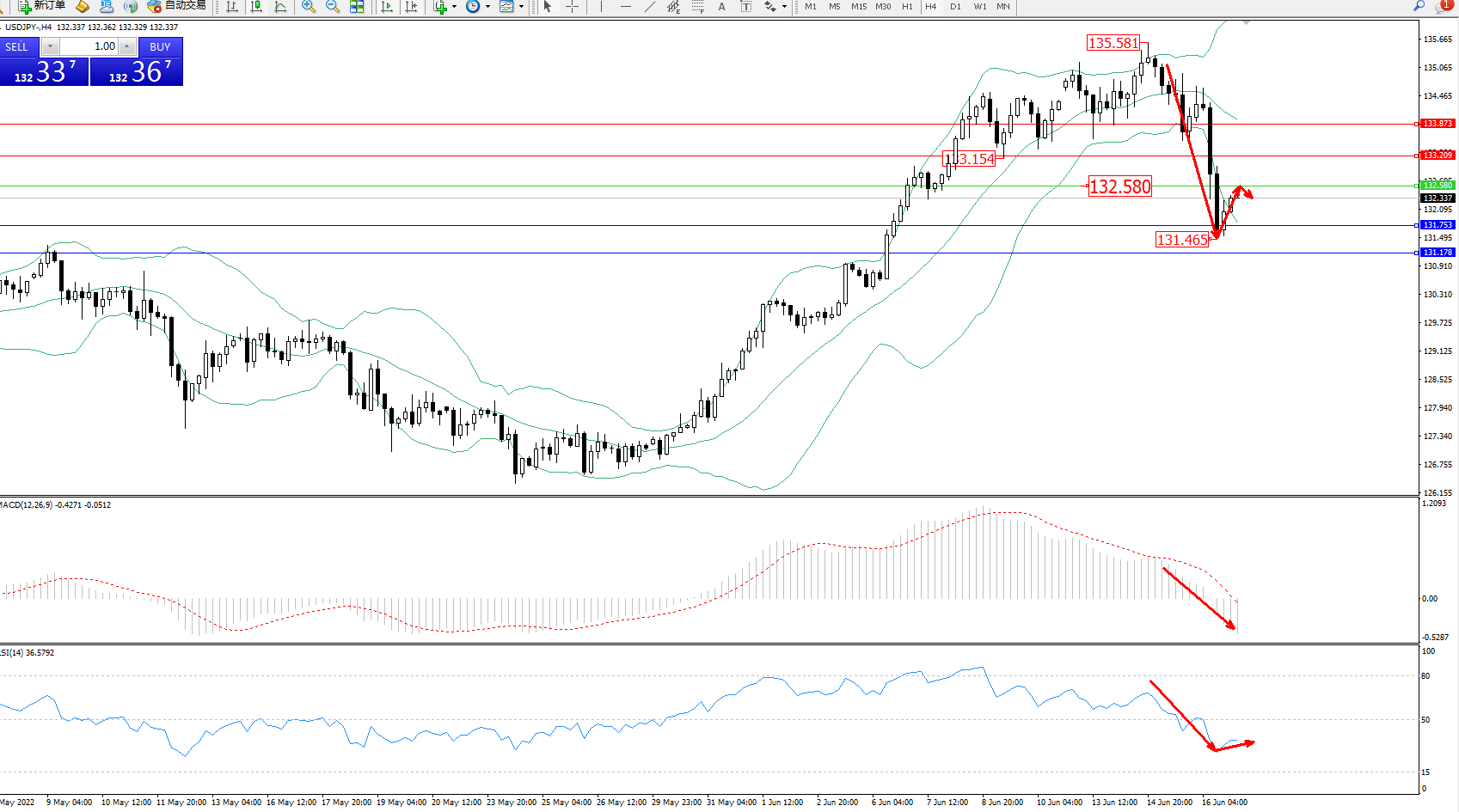 交易策略:132.580下方看跌,目标131.753、131.178