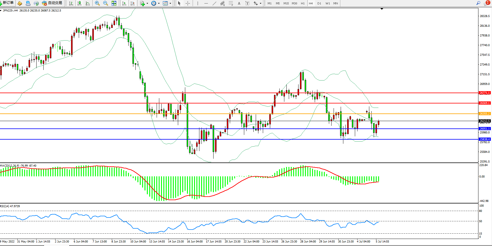 日经指数JPN225——4小时K线图显示: