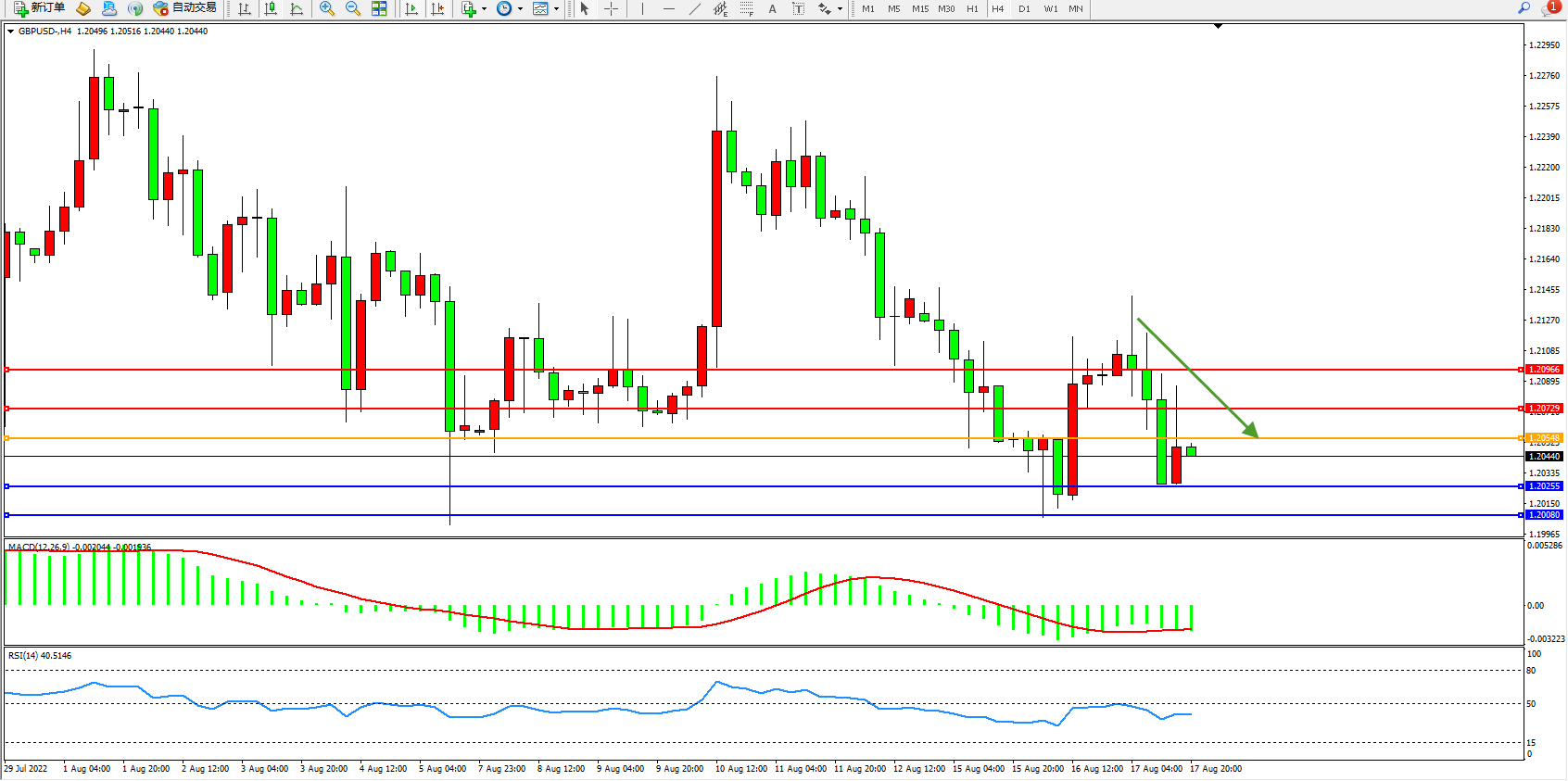 英镑美元GBPUSD ——4小时K线图显示: