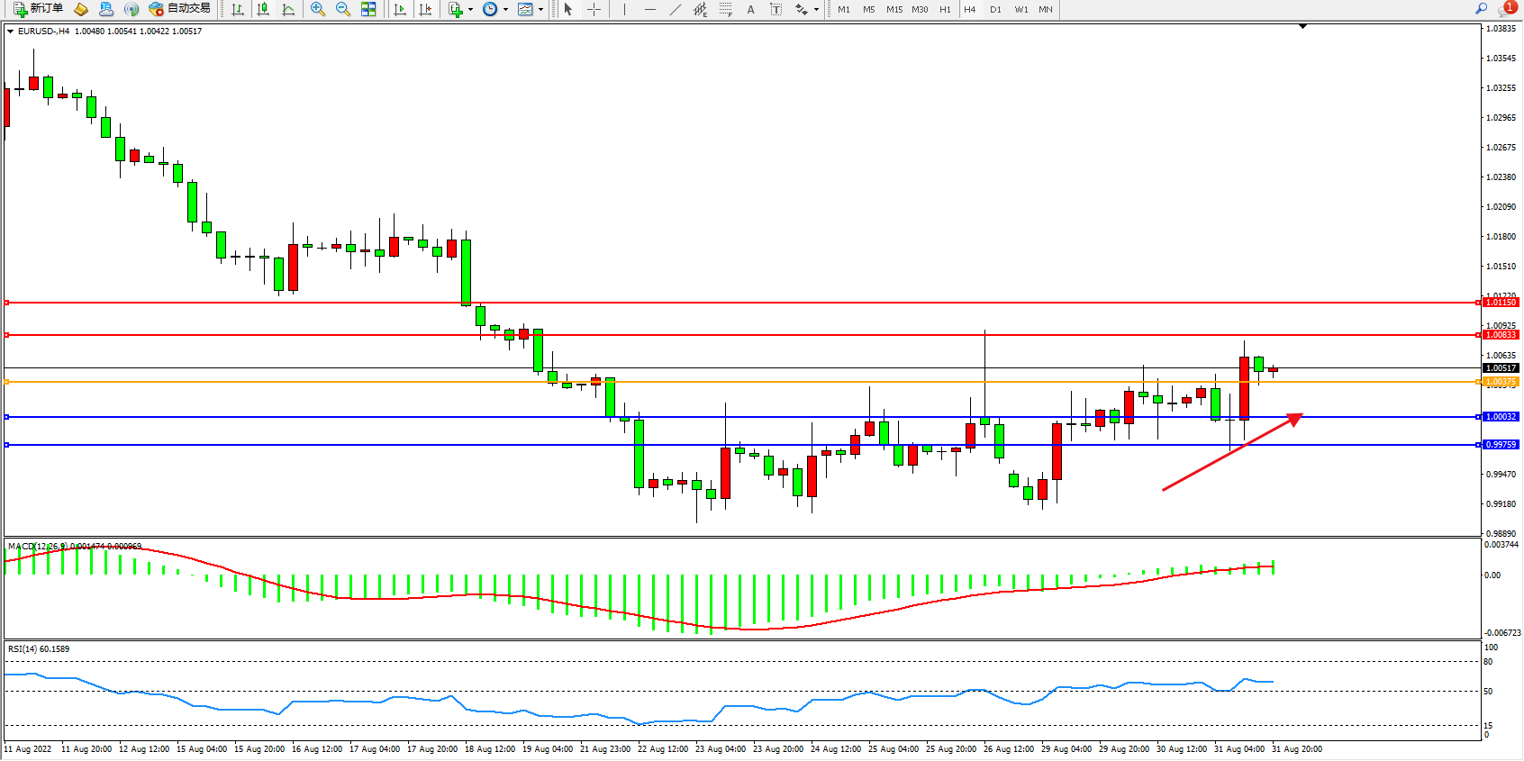 支撑位:1.00032、0.99759