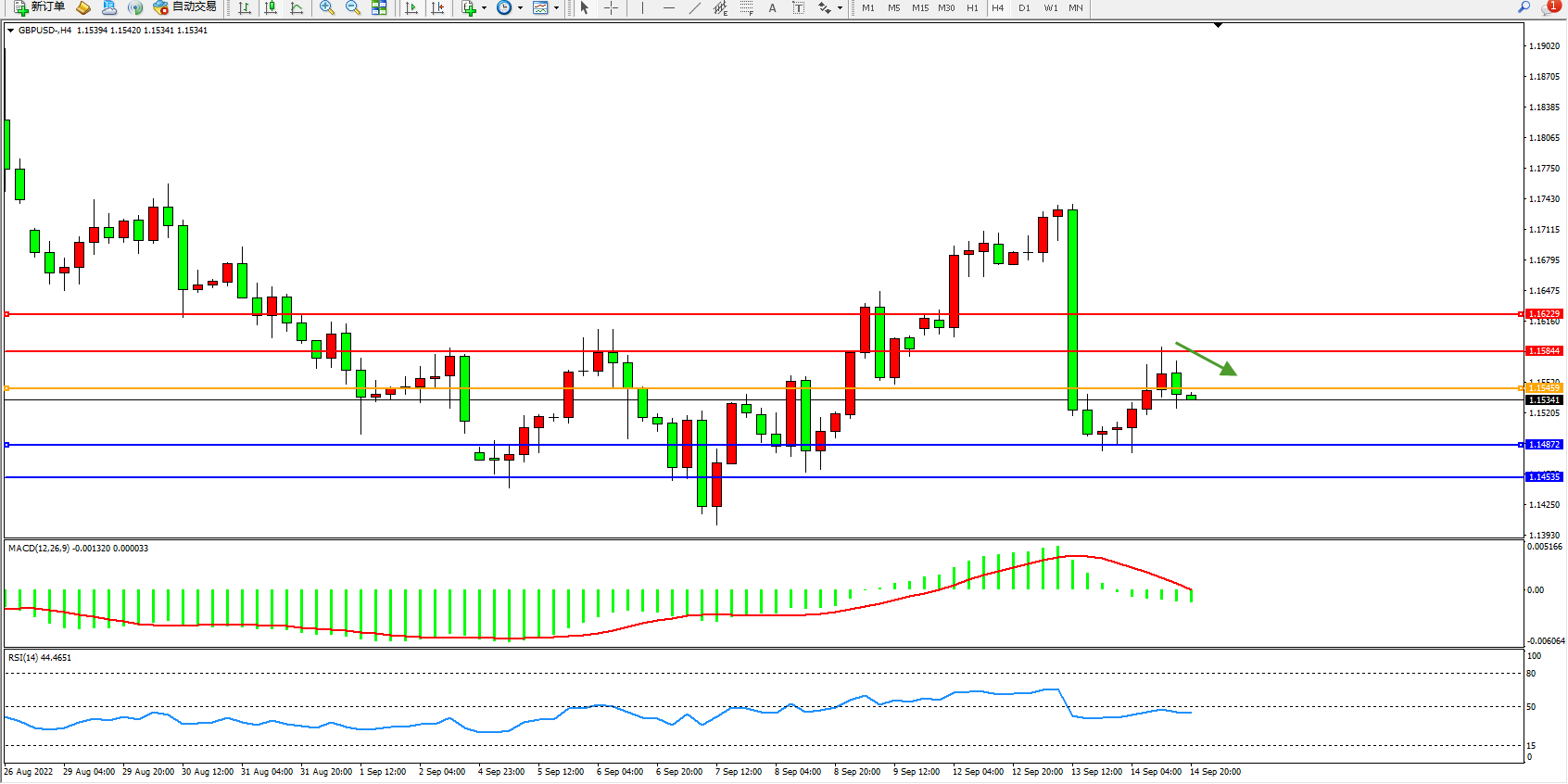 压制位:1.15844、1.16229