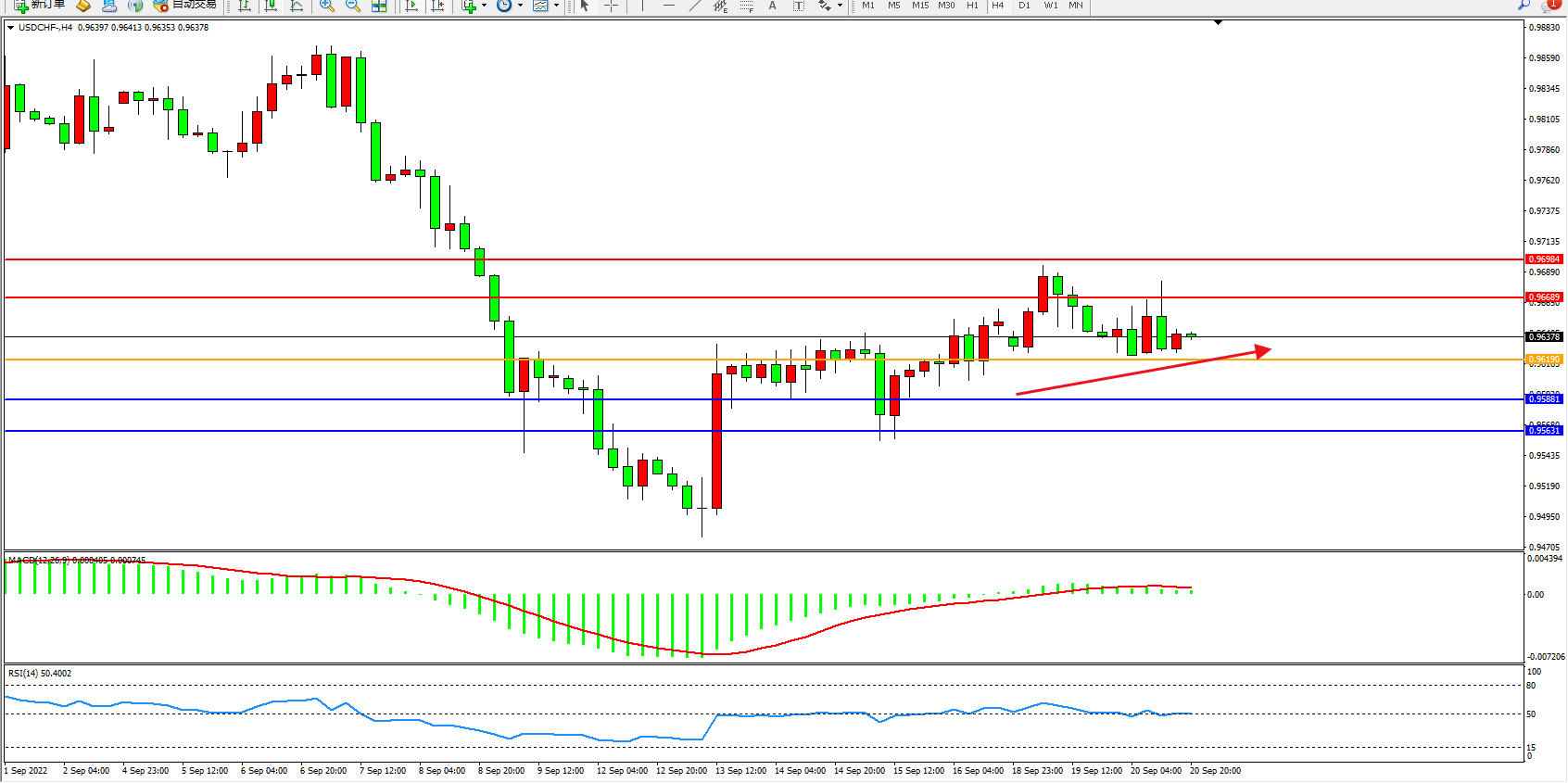 美元瑞郎USDCHF——4小时K线图显示: