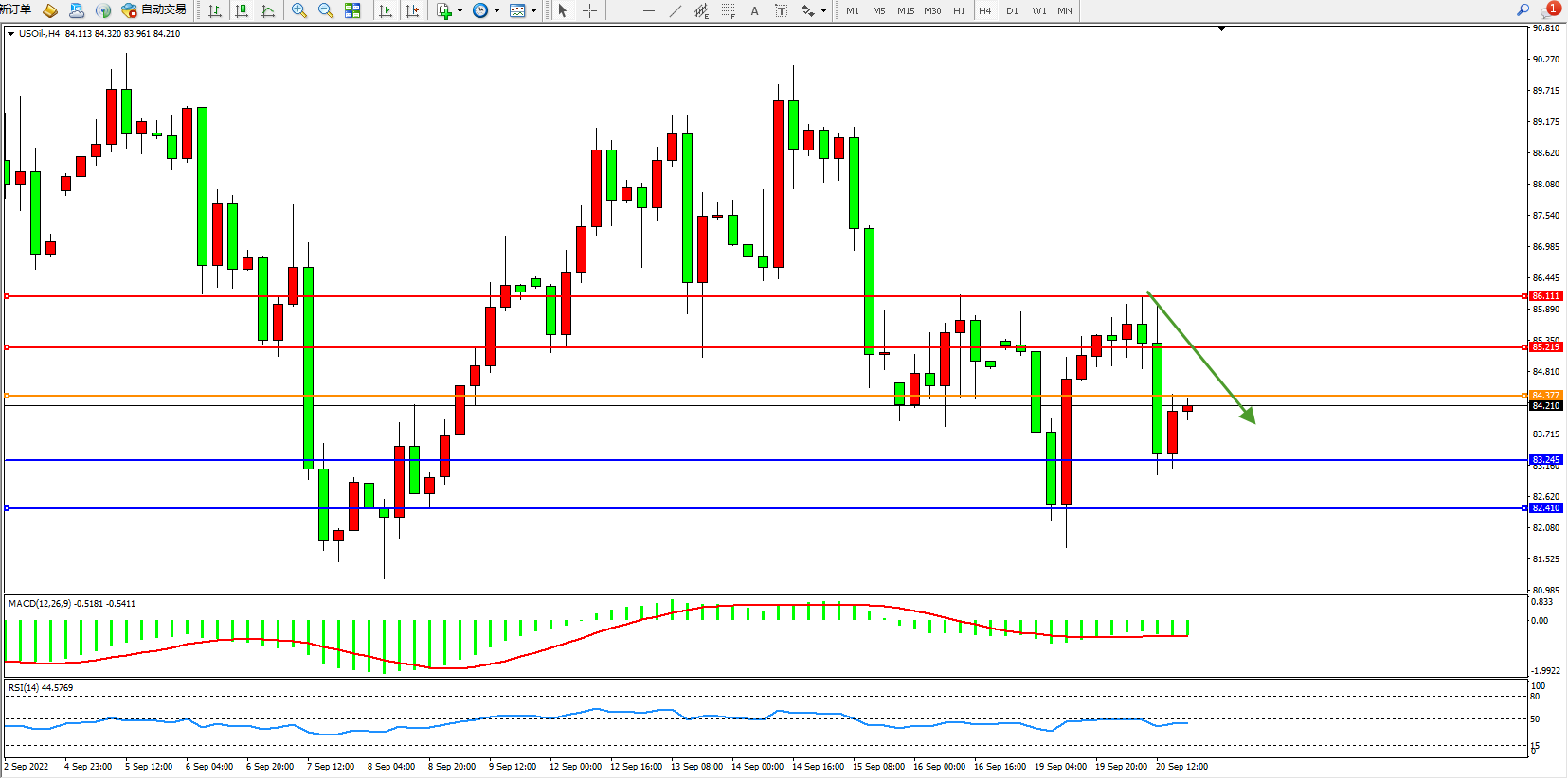 原油USOil——4小时K线图显示: