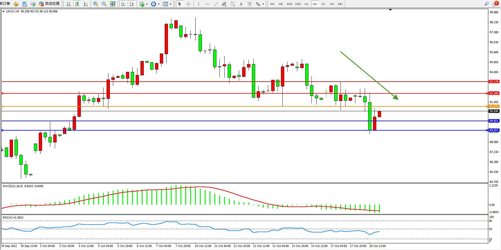 布油UKOil——4小时K线图显示:
