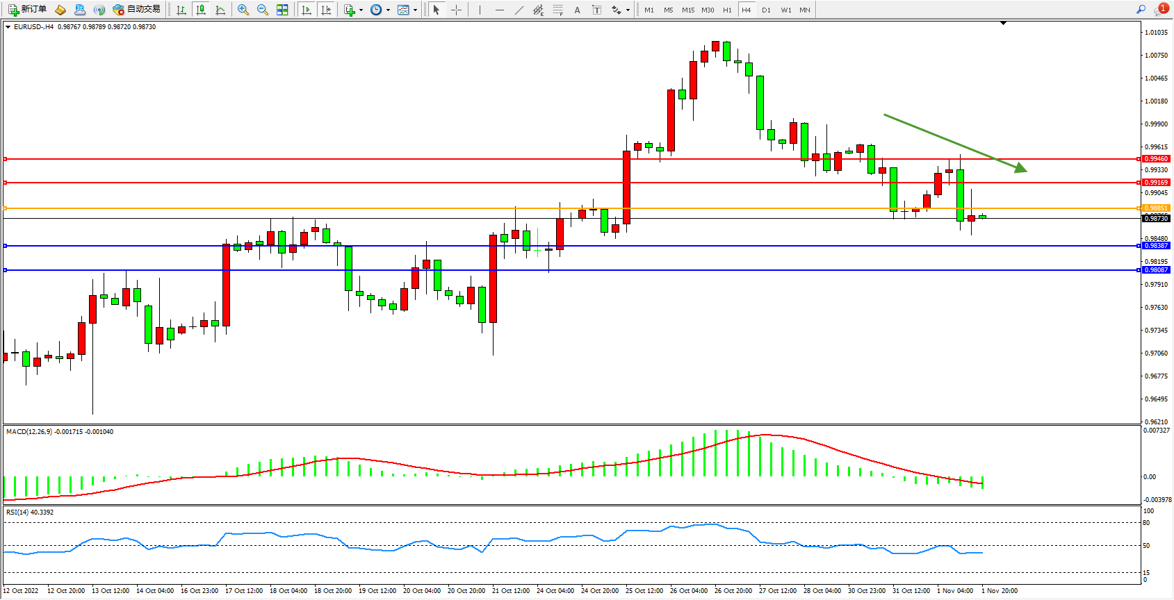 支撑:0.98387、0.98087
