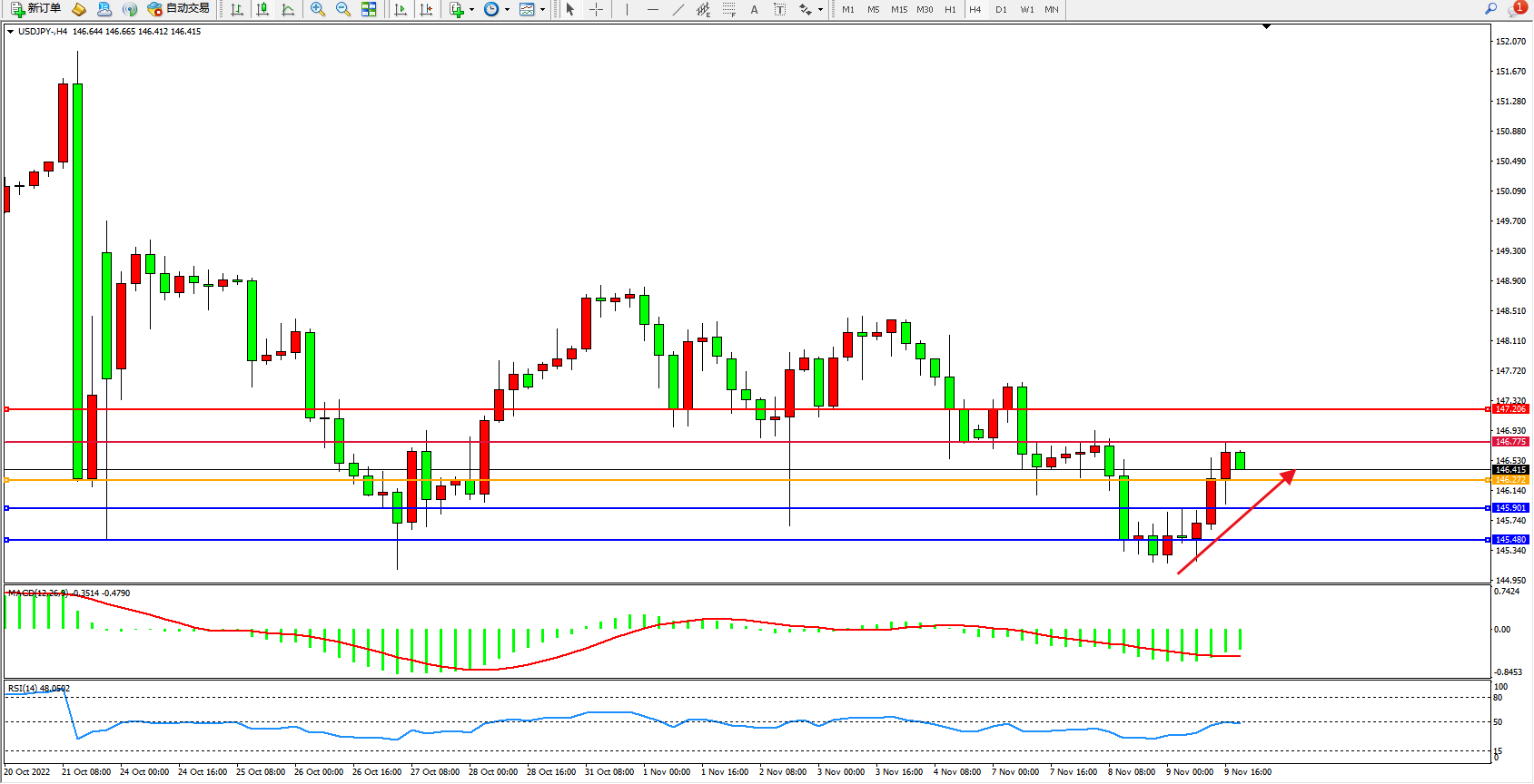 美元兑日圆维持146.415附近震荡,隔夜10年期美国公债收益率降至4.121%,两年期收益率为4.651%,而美元的普遍回落,提携了日的回升。且有传言,日本政府以抛售美债的形式加强对日汇率的干预。