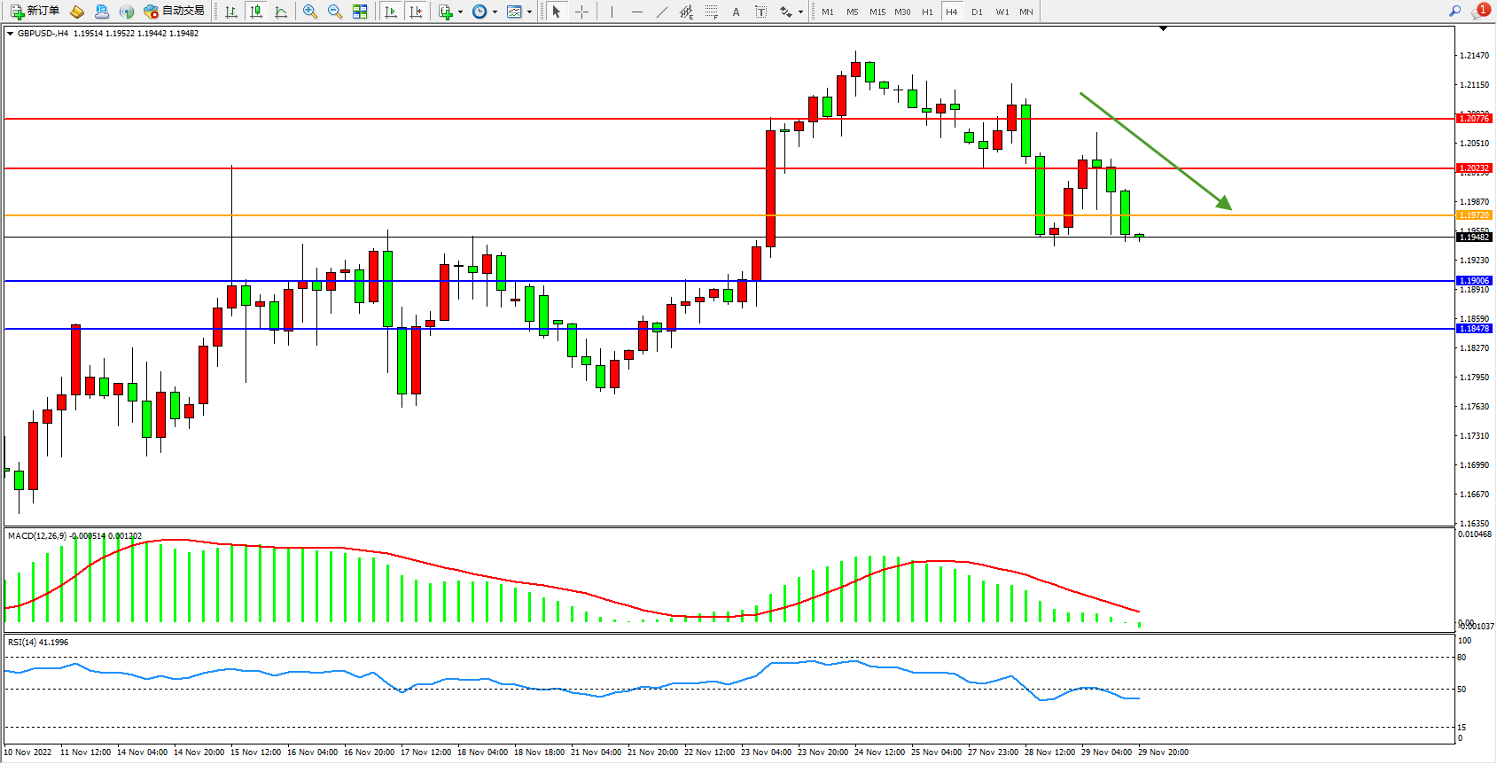 英镑美元GBPUSD ——4小时K线图显示:
