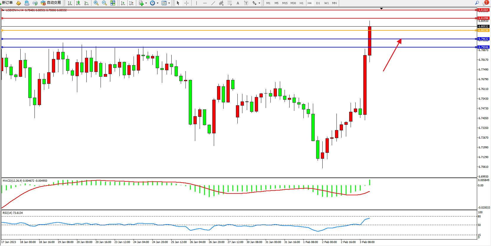 USDCNH:多头飙升 USDCNH  HKDCNH