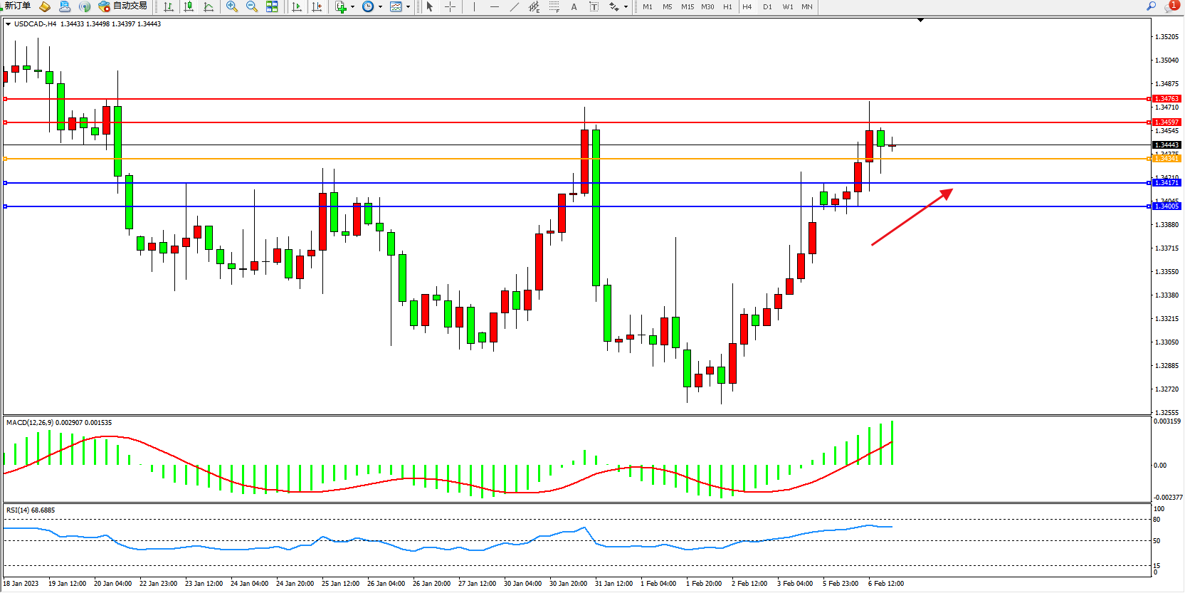USDCAD:多头上扬