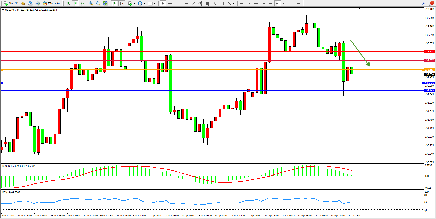 交易策略:132.653下方看跌,目标132.325 132.143