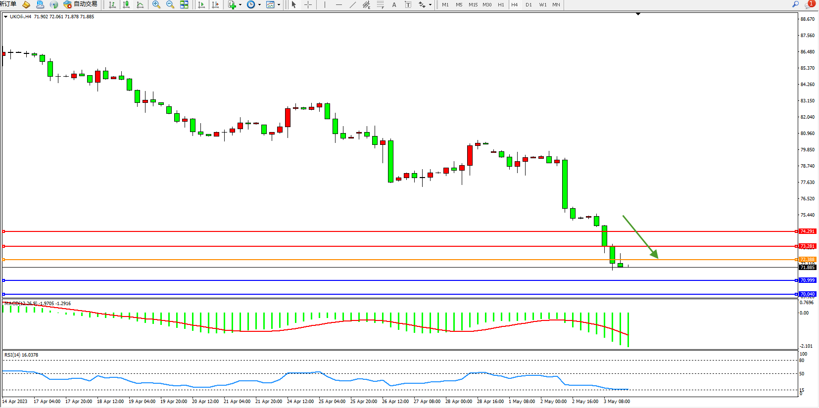 布油UKOil——4小时K线图显示:
