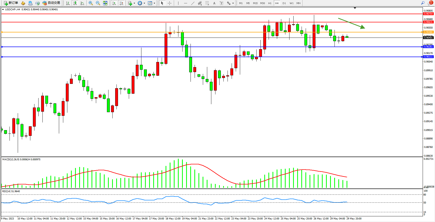 美元瑞郎USDCHF——4小时K线图显示: