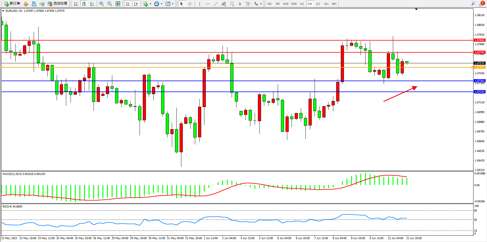 交易策略:1.07524上方看涨,目标1.07702  1.07845