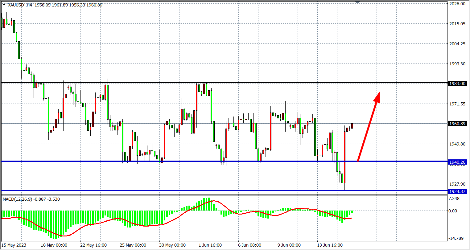 周四(6月15日)欧洲央行如期加息25个基点,市场加码押注该央行还将再加息50个基点,提振欧元大涨,导致美元指数大跳水,现货黄金走出“V”型反转,一度站上1960美元关口,收涨0.86%。展望后市,鉴于全球通胀仍然高企,一旦有更多的央行采取更加基金的货币政策打压通胀,届时料对黄金需求构成冲击。