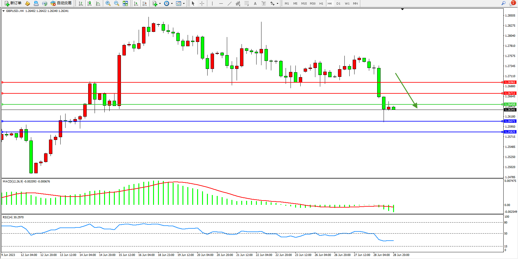 交易策略:1.26458下方看跌,目标1.26071  1.25825