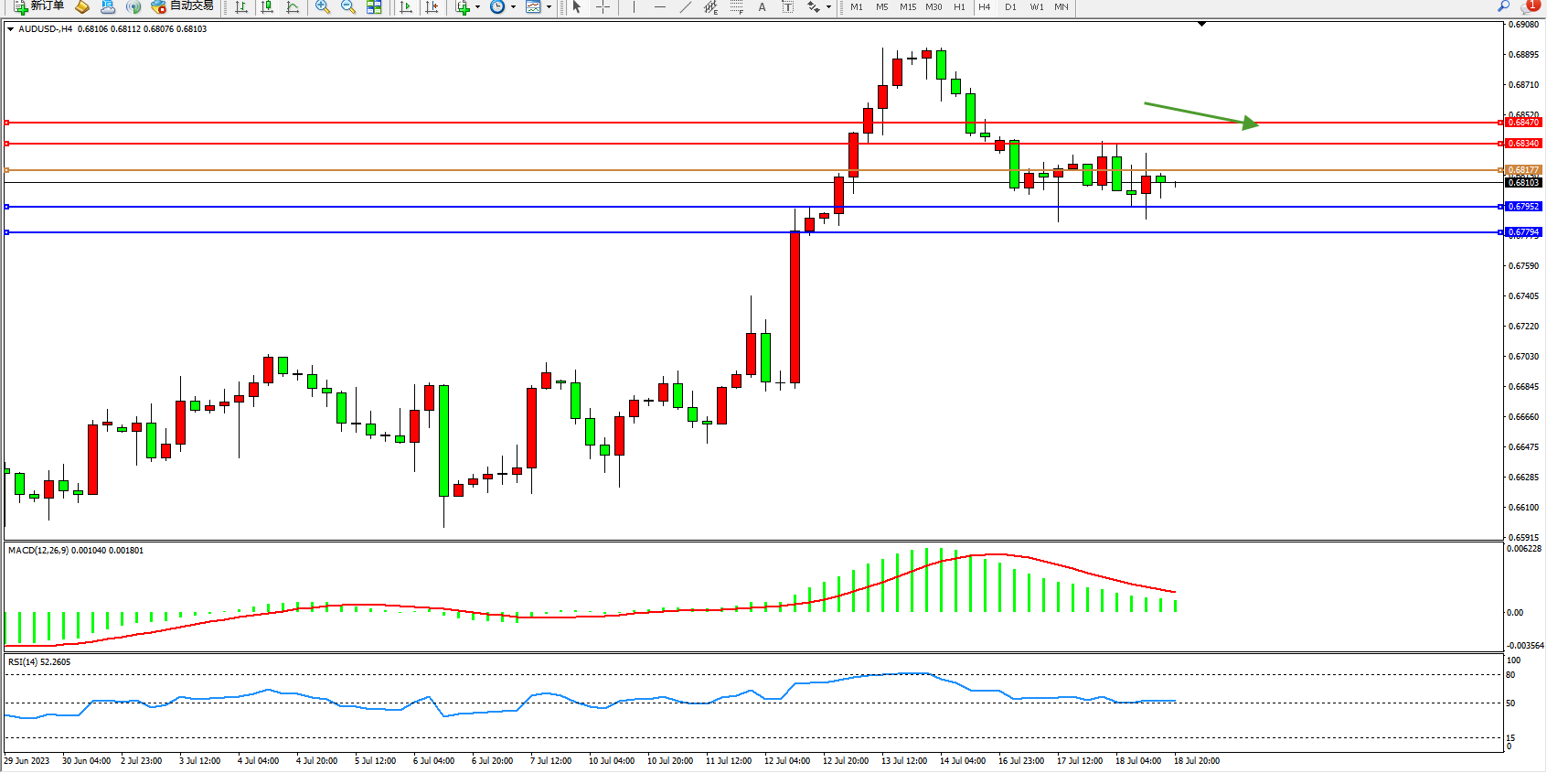 备选策略:0.68177上方看涨,目标0.68340  0.68470