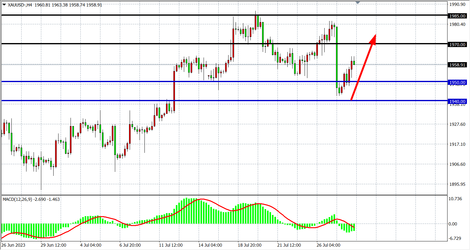 现货黄金XAUUS四小时图