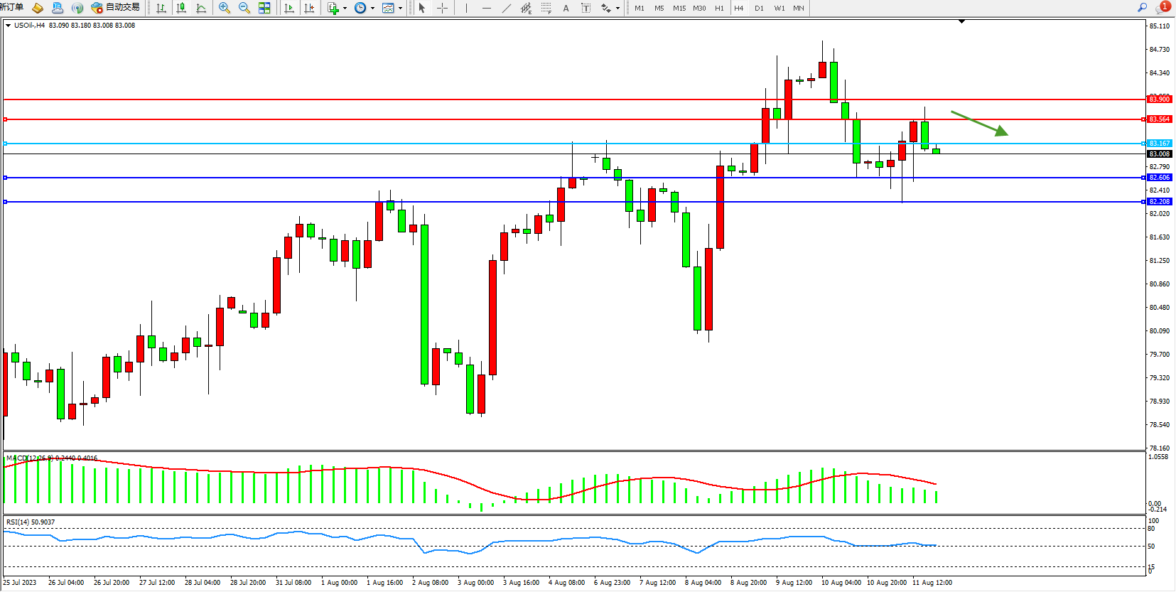 原油USOil——4小时K线图显示: