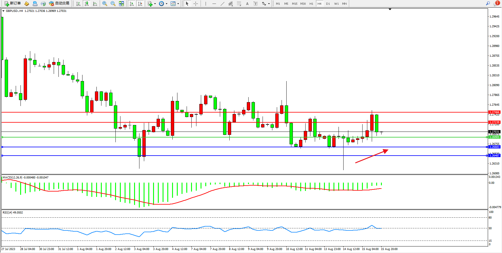 交易策略:1.26905上方看涨,目标1.27239  1.27466