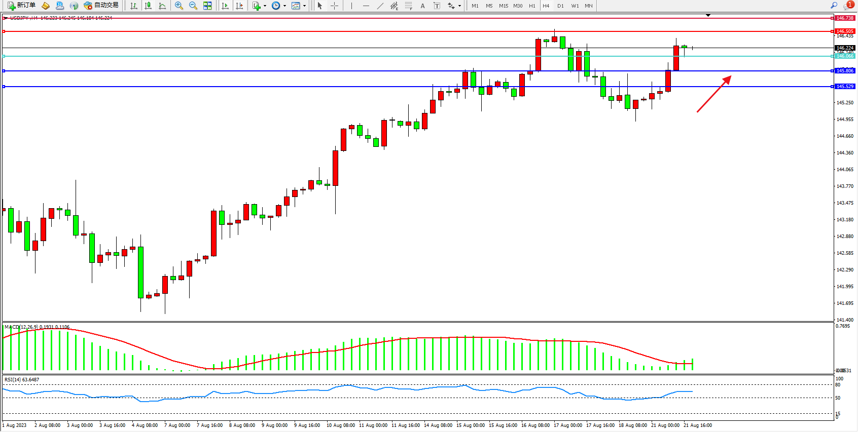 阻力位:146.505  146.739