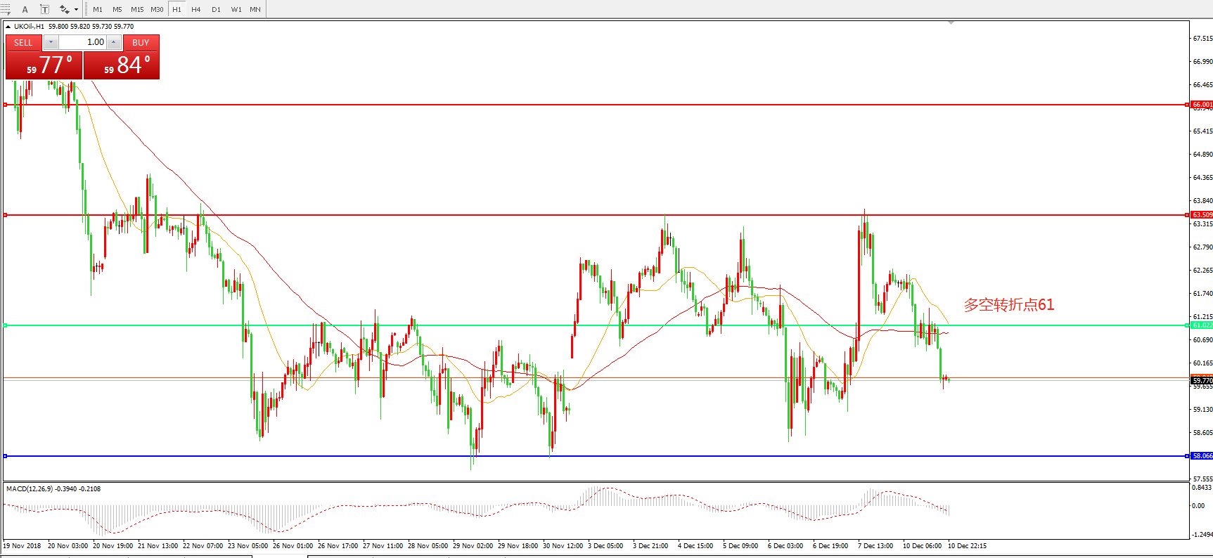 交易策略:在61.00之下看跌,目标58.00    55.00