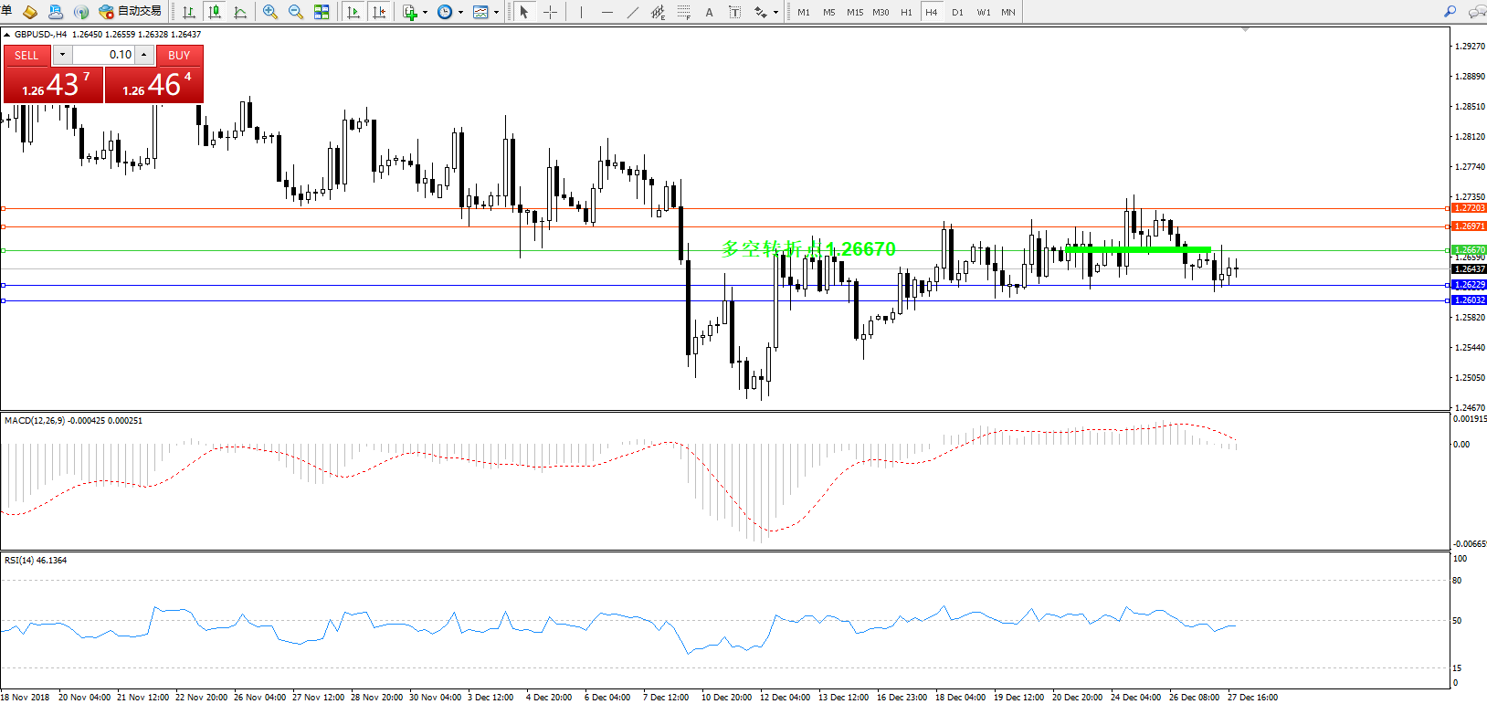 交易策略:1.26670下方看跌,目标1.262291.26032