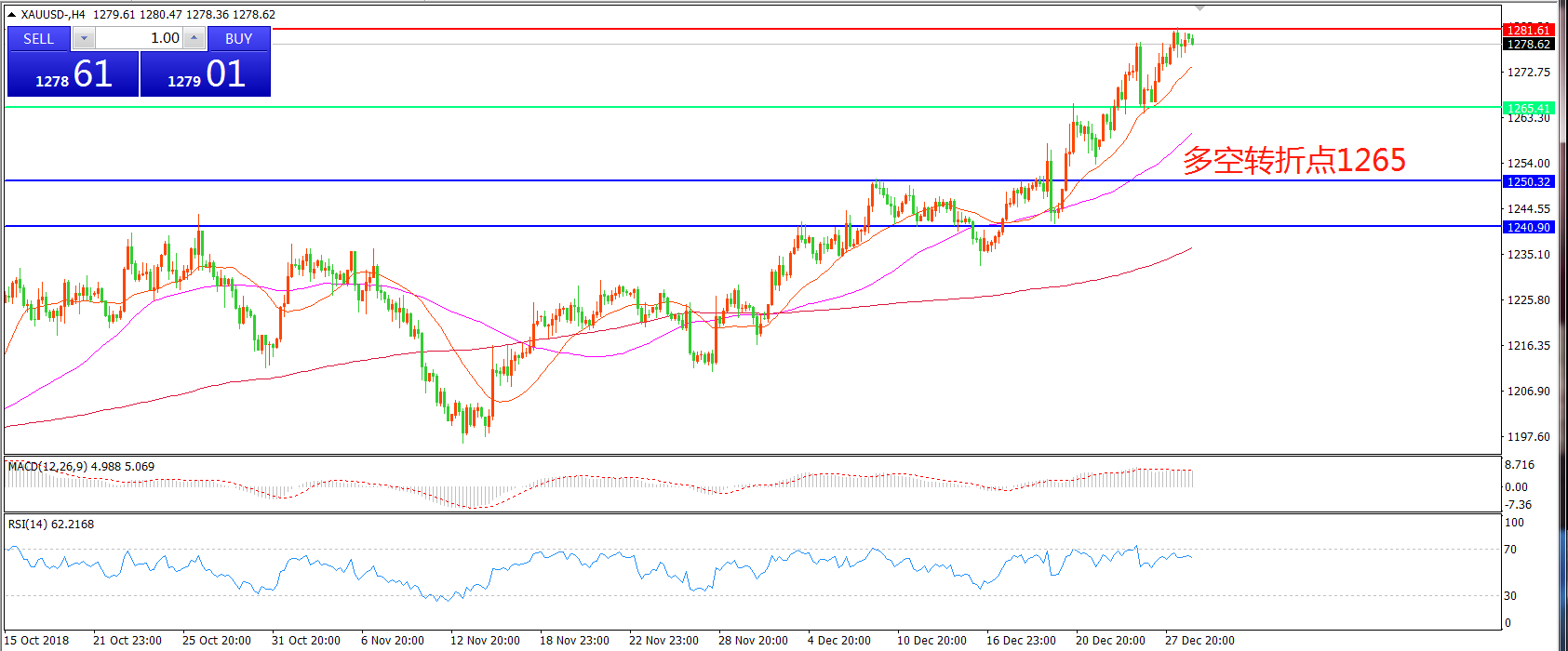 多空转折点:1265.00