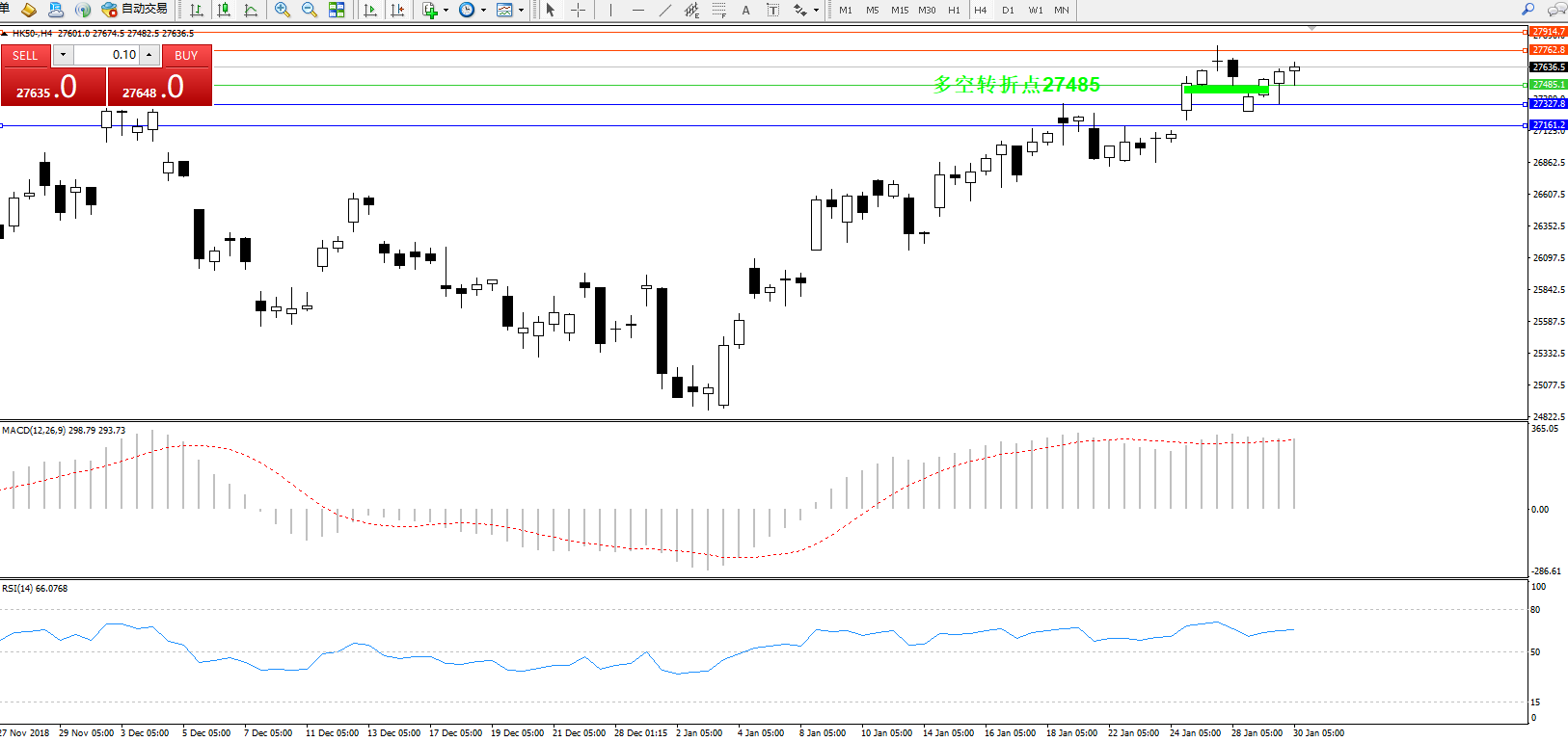 香港恒生指数早盘低开后震荡走高,午后在略高于平盘线上方盘整,截至收盘小涨0.4%,收于27642.85点。市场密切关注将于今日晚些时候开始的备受期待的中美高级别经贸磋商。