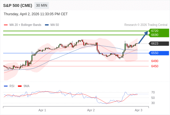 交易策略: 在 6550 之上,看涨,目标价位为 6690 ,然后为 6720 。
