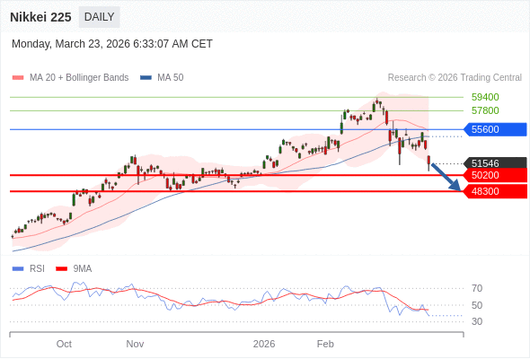 在 55600 之下,看跌,目标价位为 50200 ,然后为 48300 。